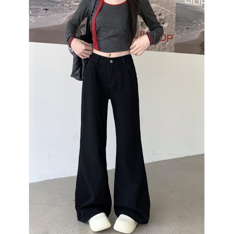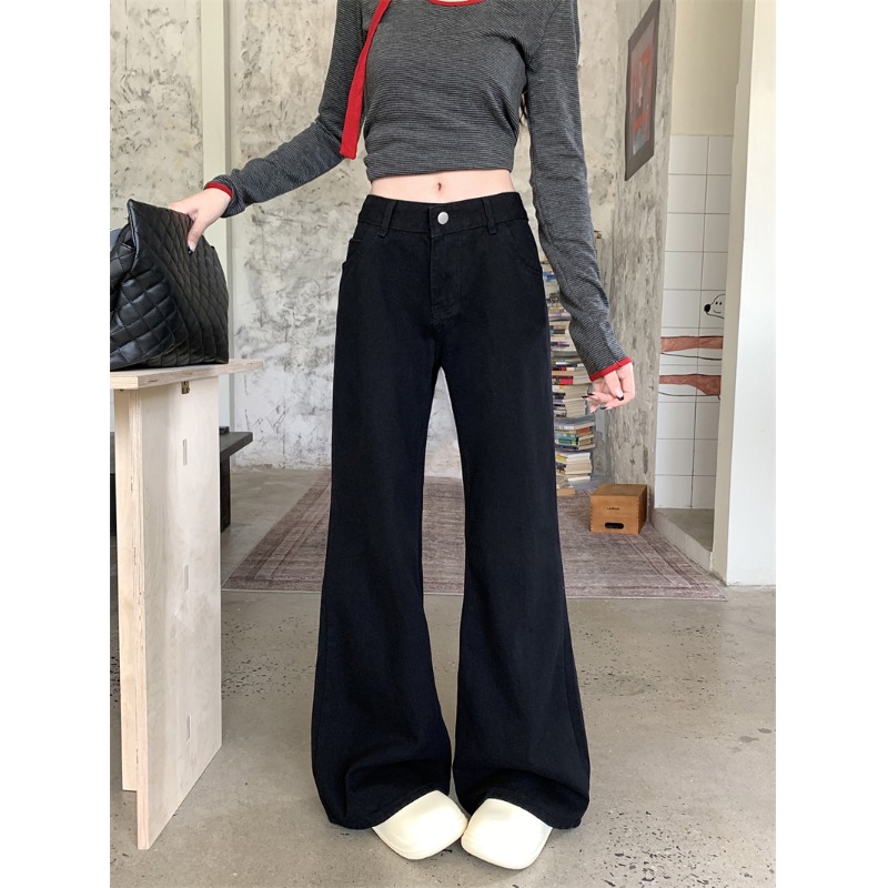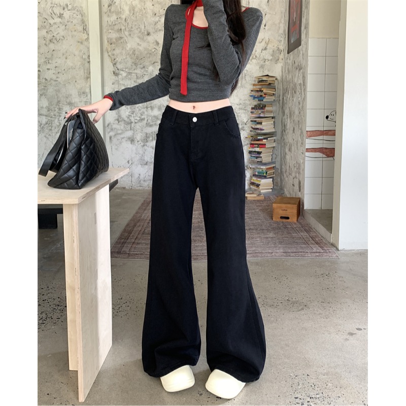 Hot girl retro bootcut pants, low-rise wide-leg jeans