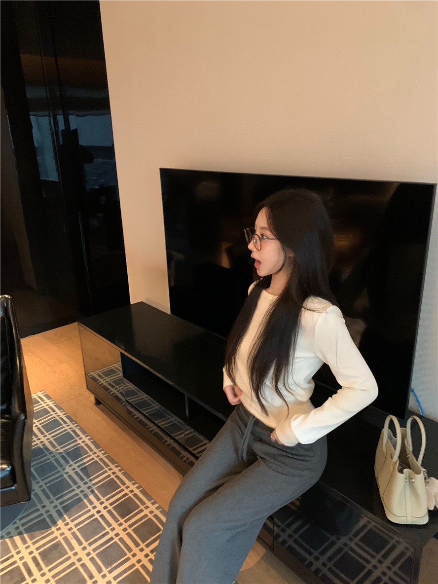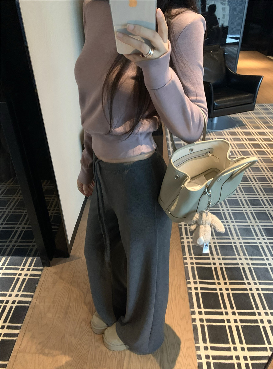 Lazy Style Solid Color Crew Neck Knit Sweater Women's Fall and Winter Loose Slimming Slacks Pants