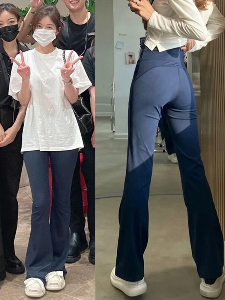 Lu lu yoga pants with women's wear sports and fitness casual pants with high waist hip lift, summer flared horseshoe pants trousers