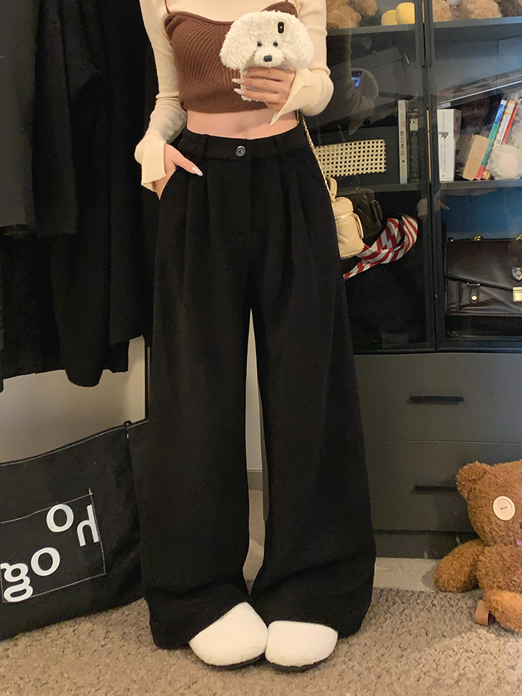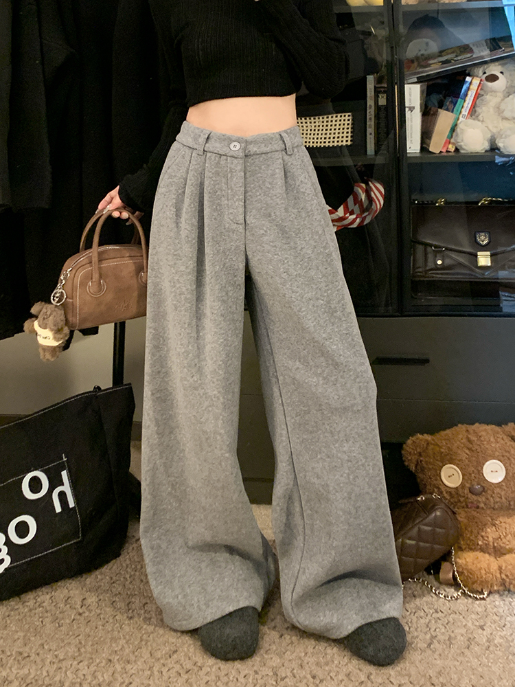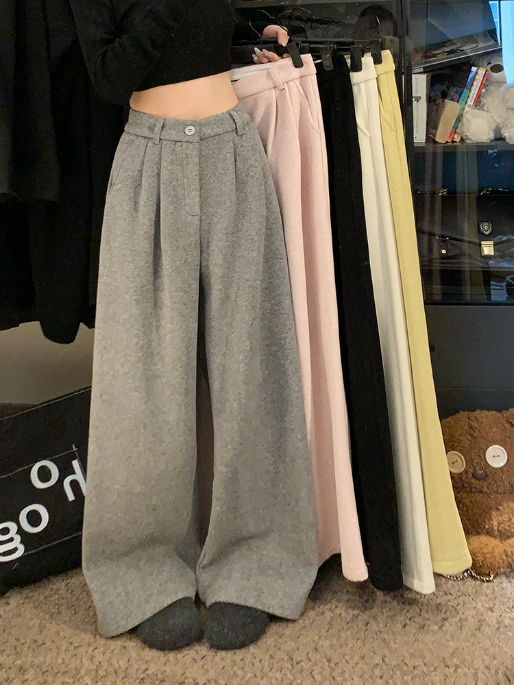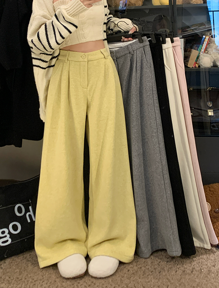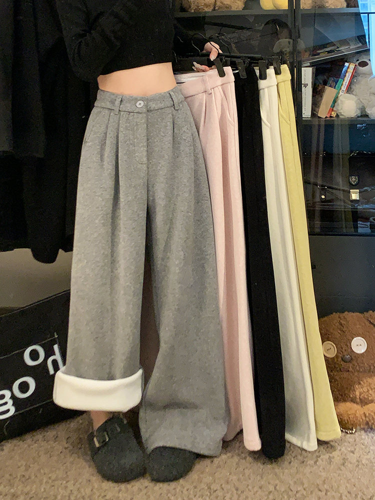 PPHOME High-waistedfleece thickened woolen wide-leg pants