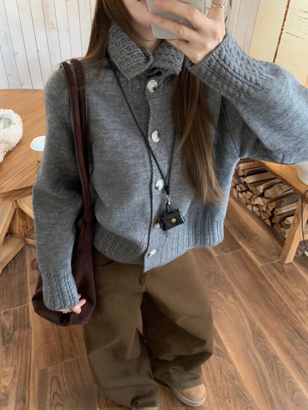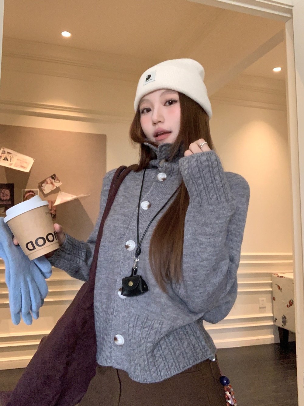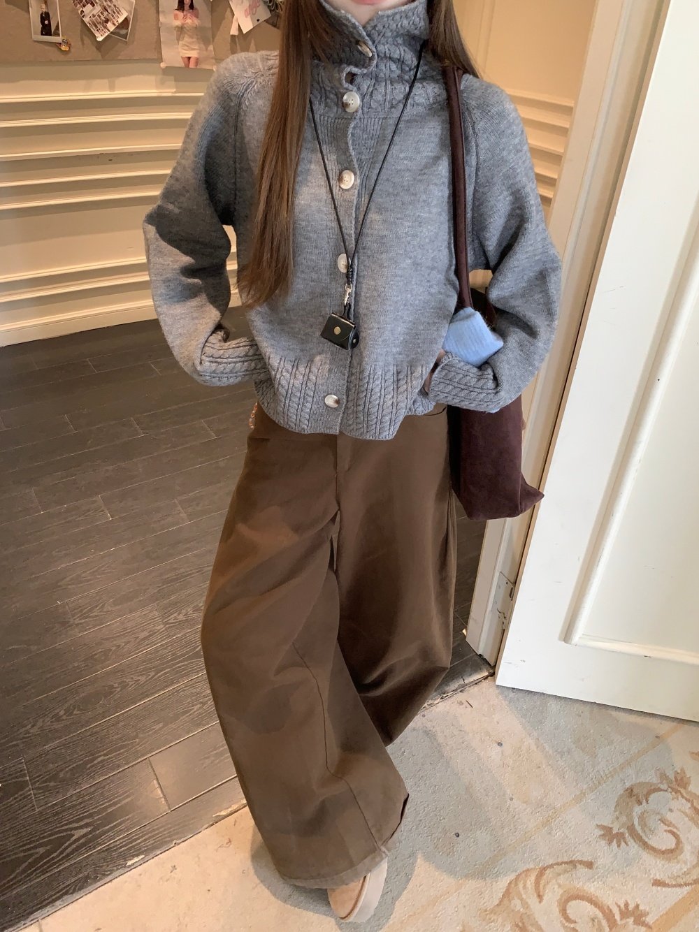 Gray stand-up collar twist knitted sweater new loose lazy style versatile sweater jacket