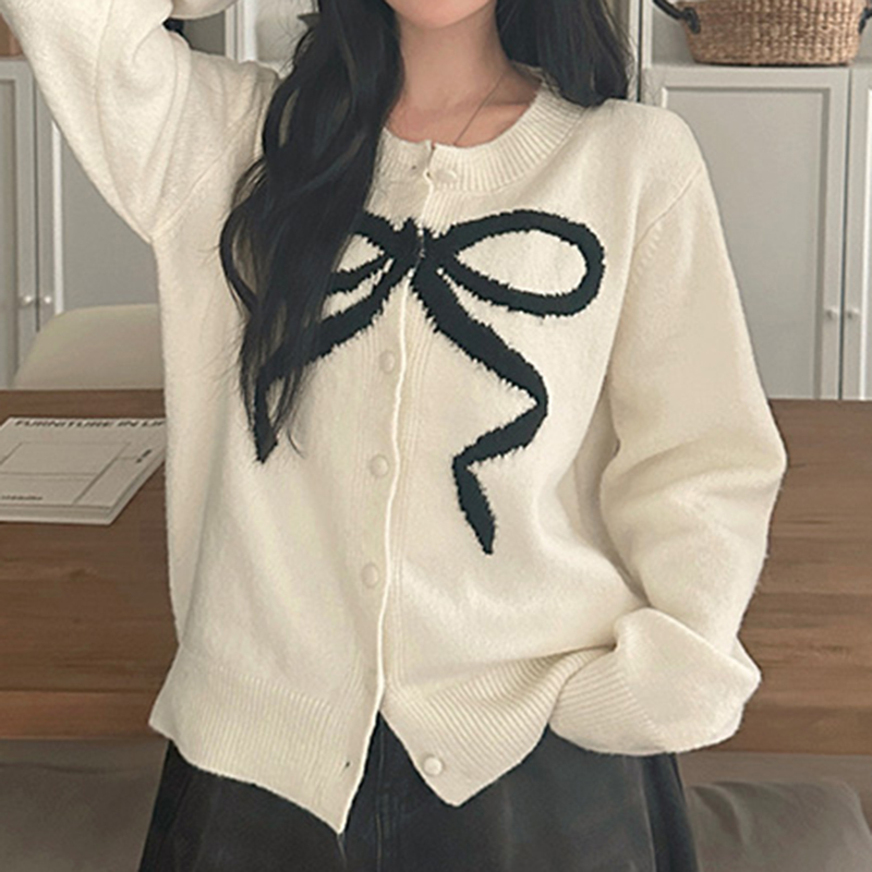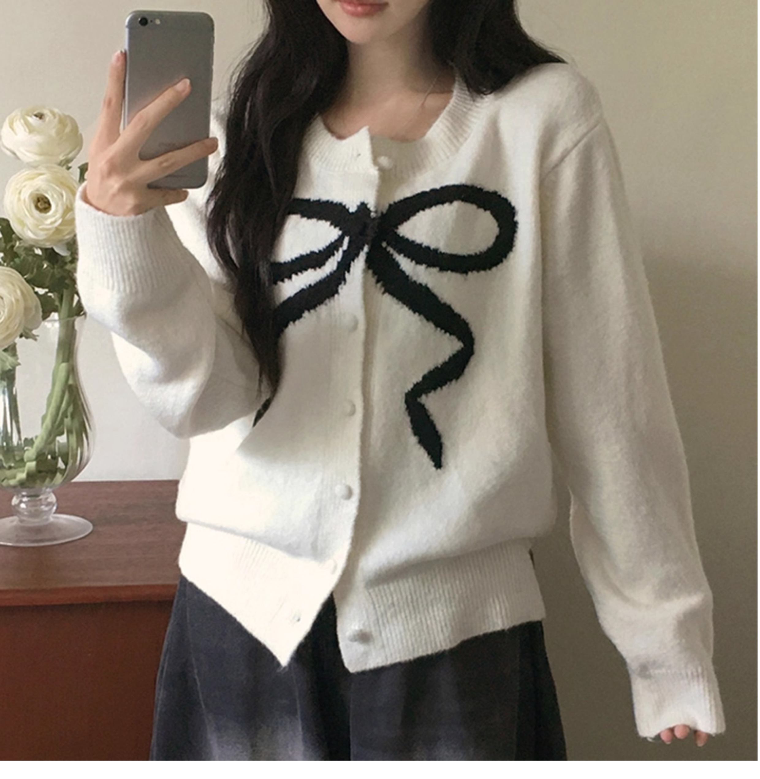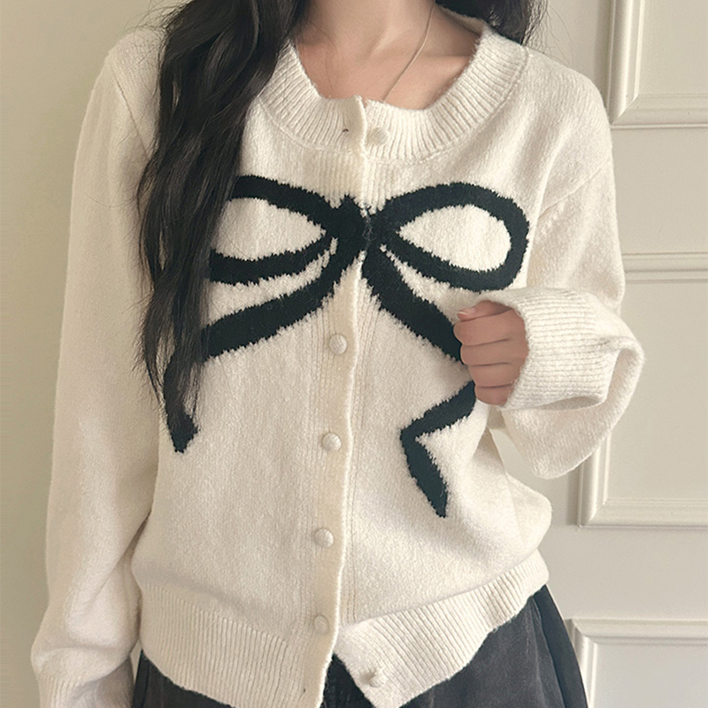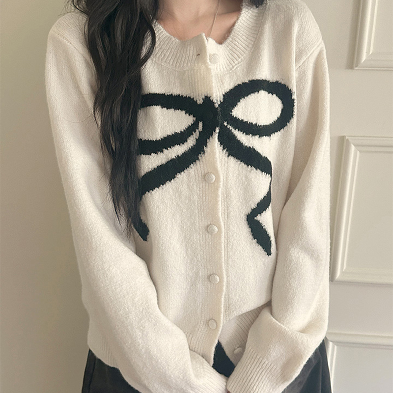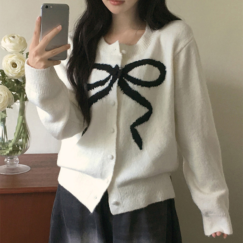 IUAE "Girly Complex" bow cardigan loose wool weaver simple breasted straight casual knitted jacket