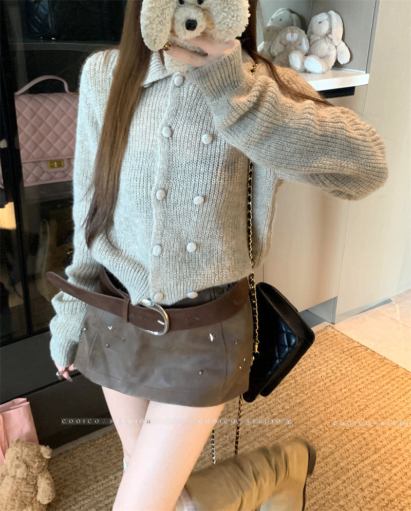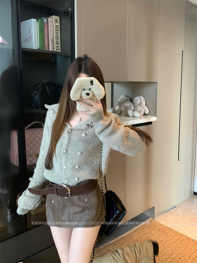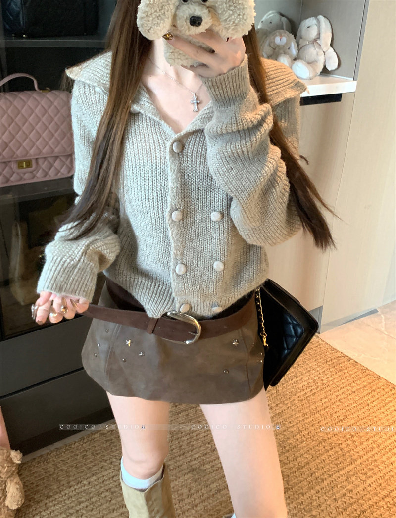Lazy Wind Lapel Long Sleeve Knitted Cardigan New Retro Loose Sweater Jacket
