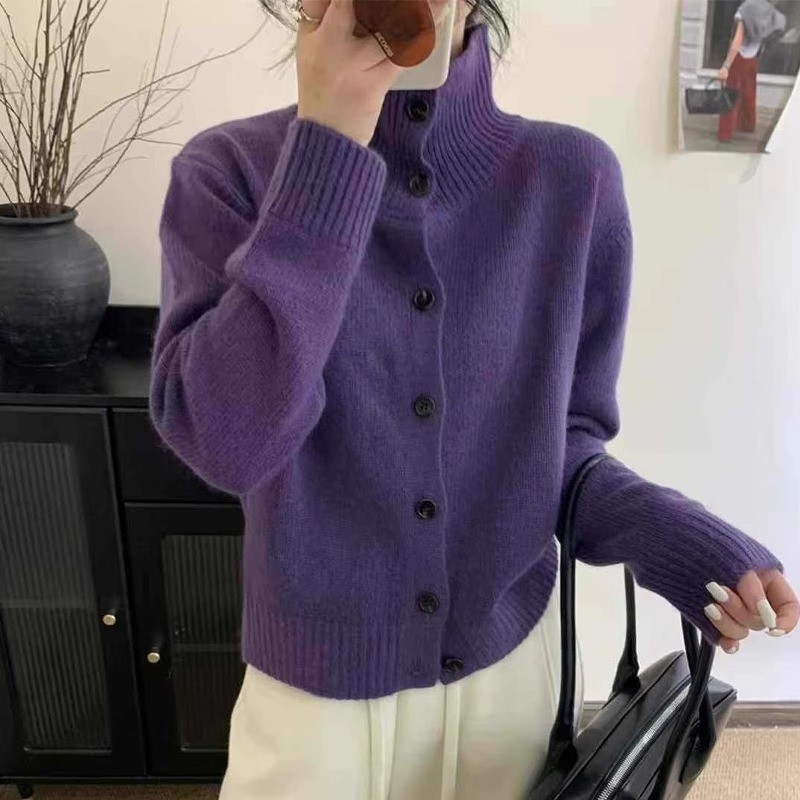 Women's Autumn/Winter loose purple inner European high-end high-collared knitted cardigan jacket