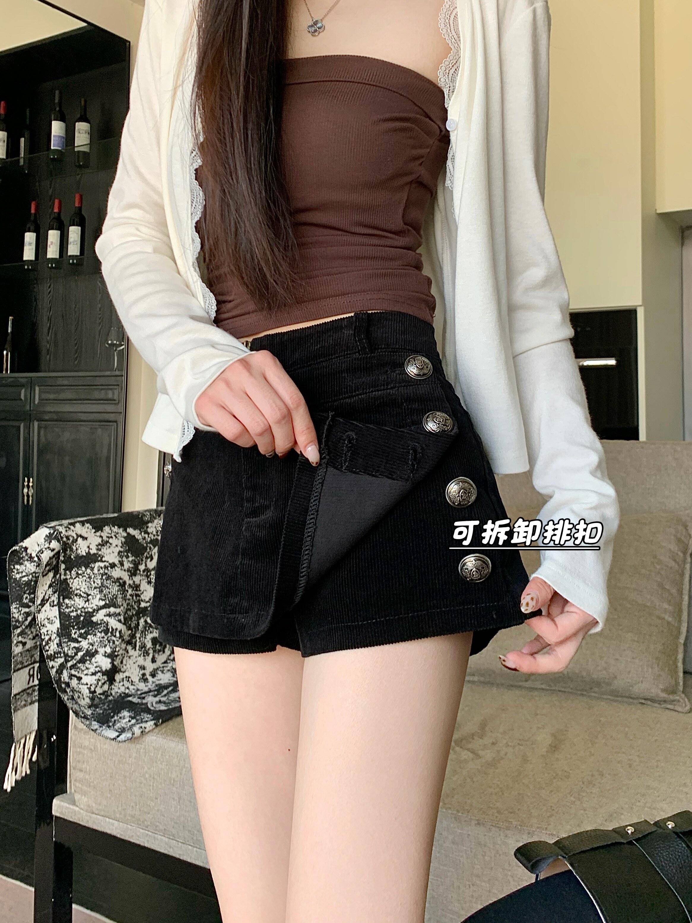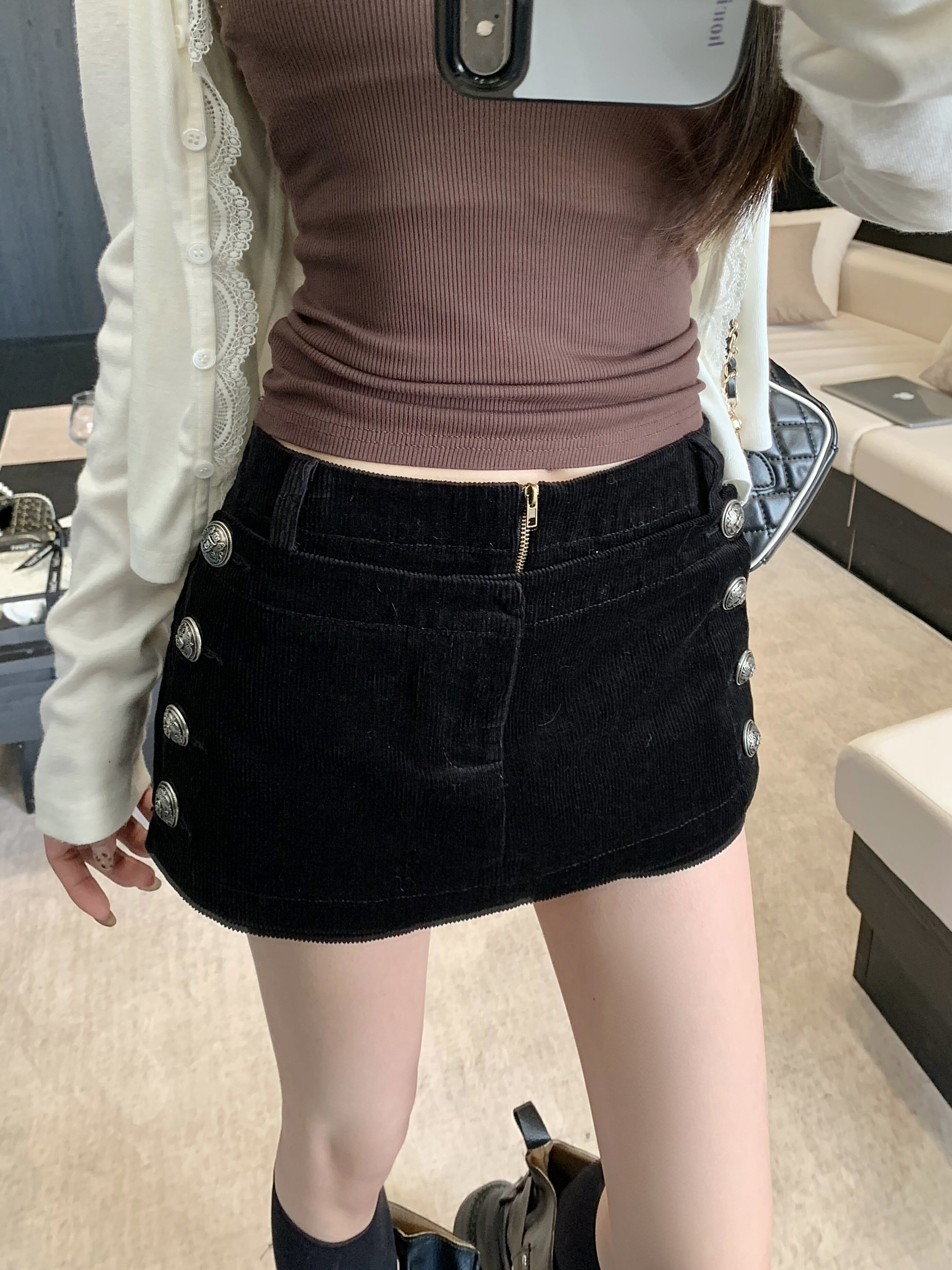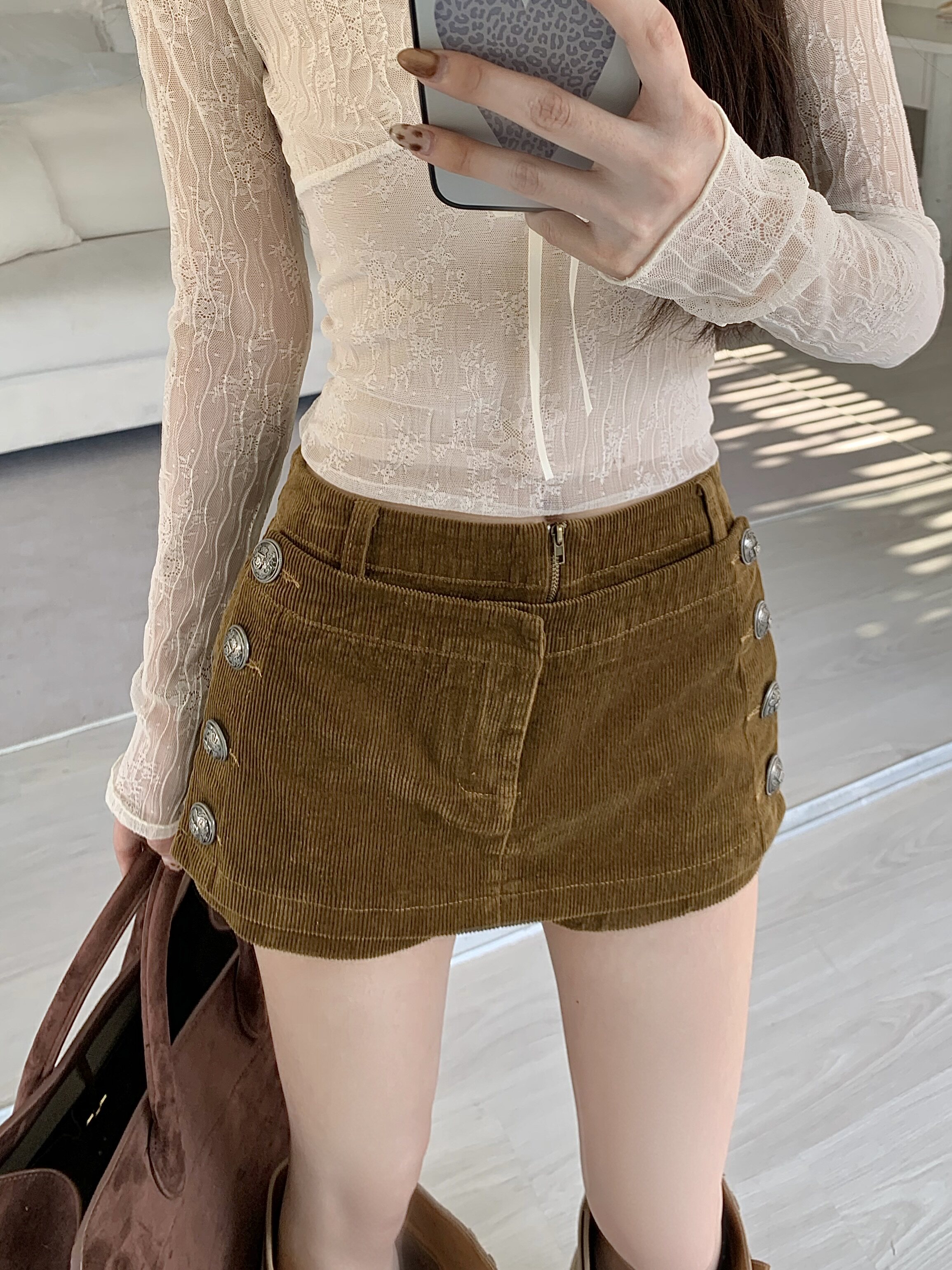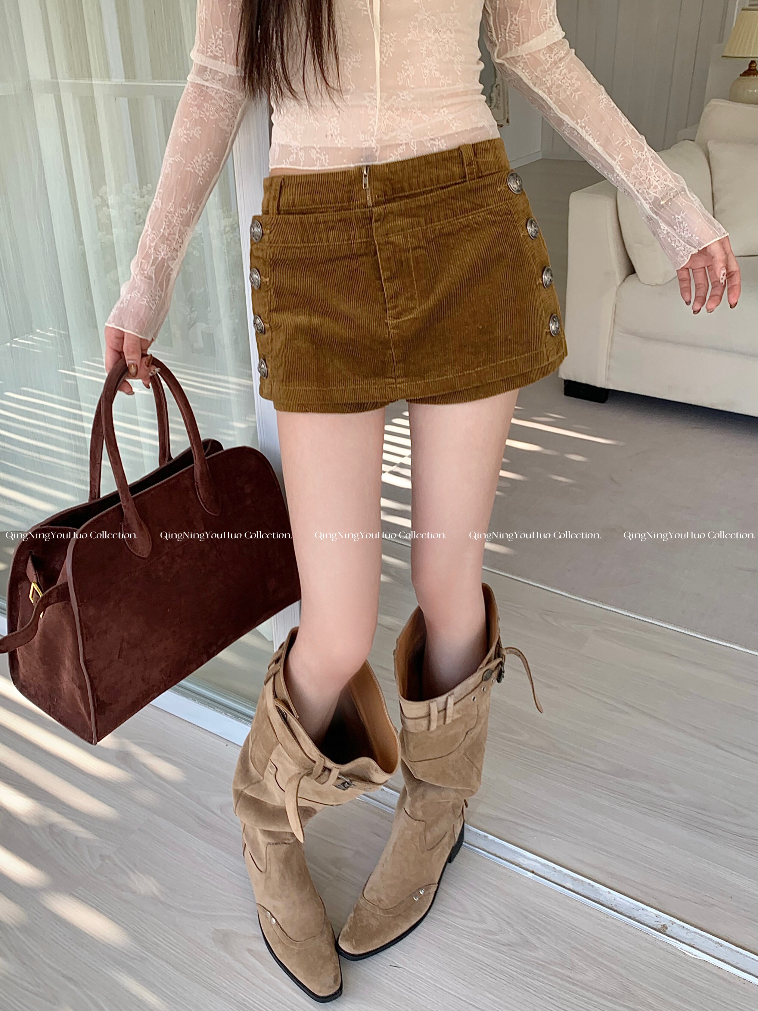 Khaki corduroy hip-hugging skirt, A-line skirt