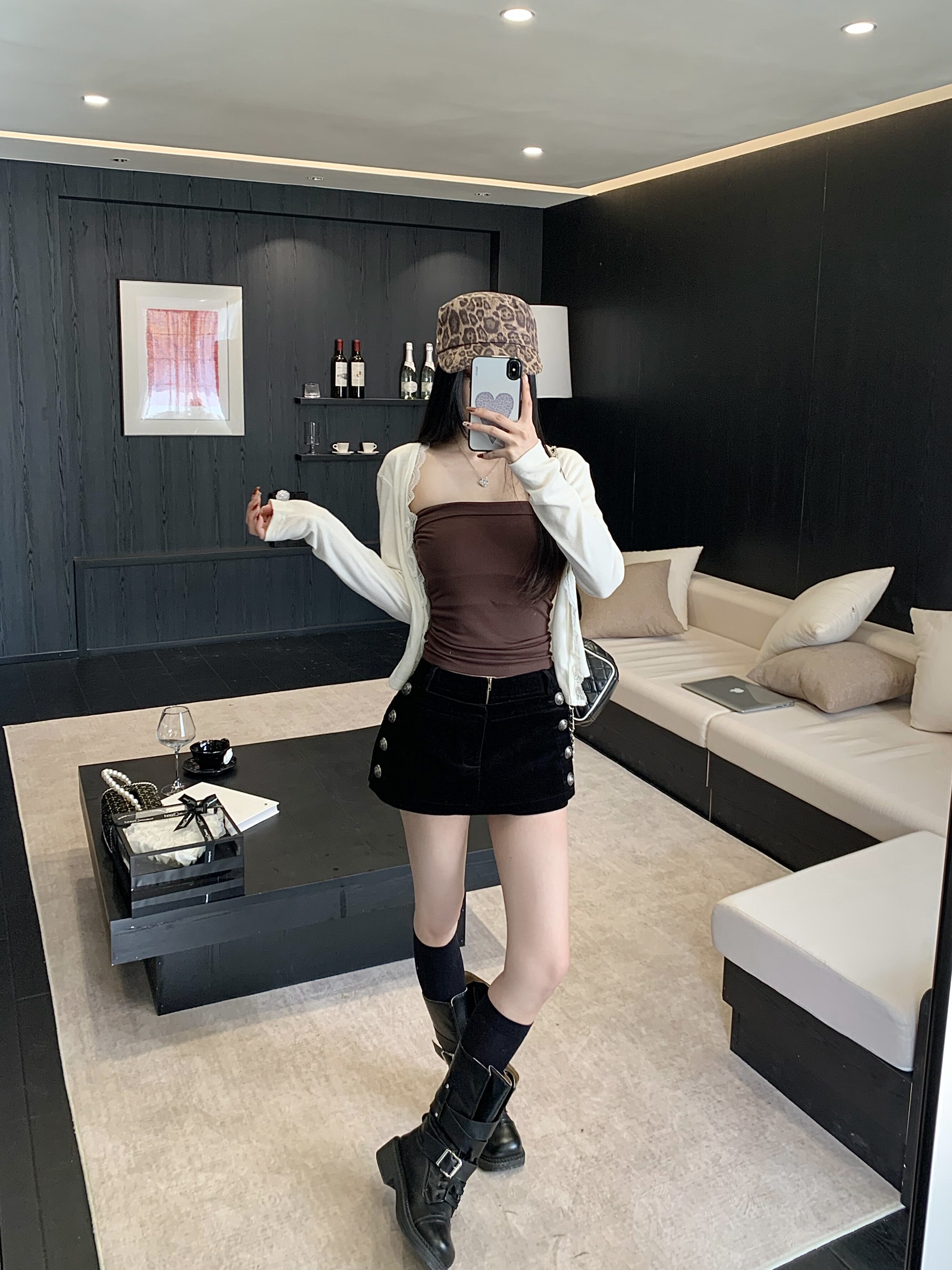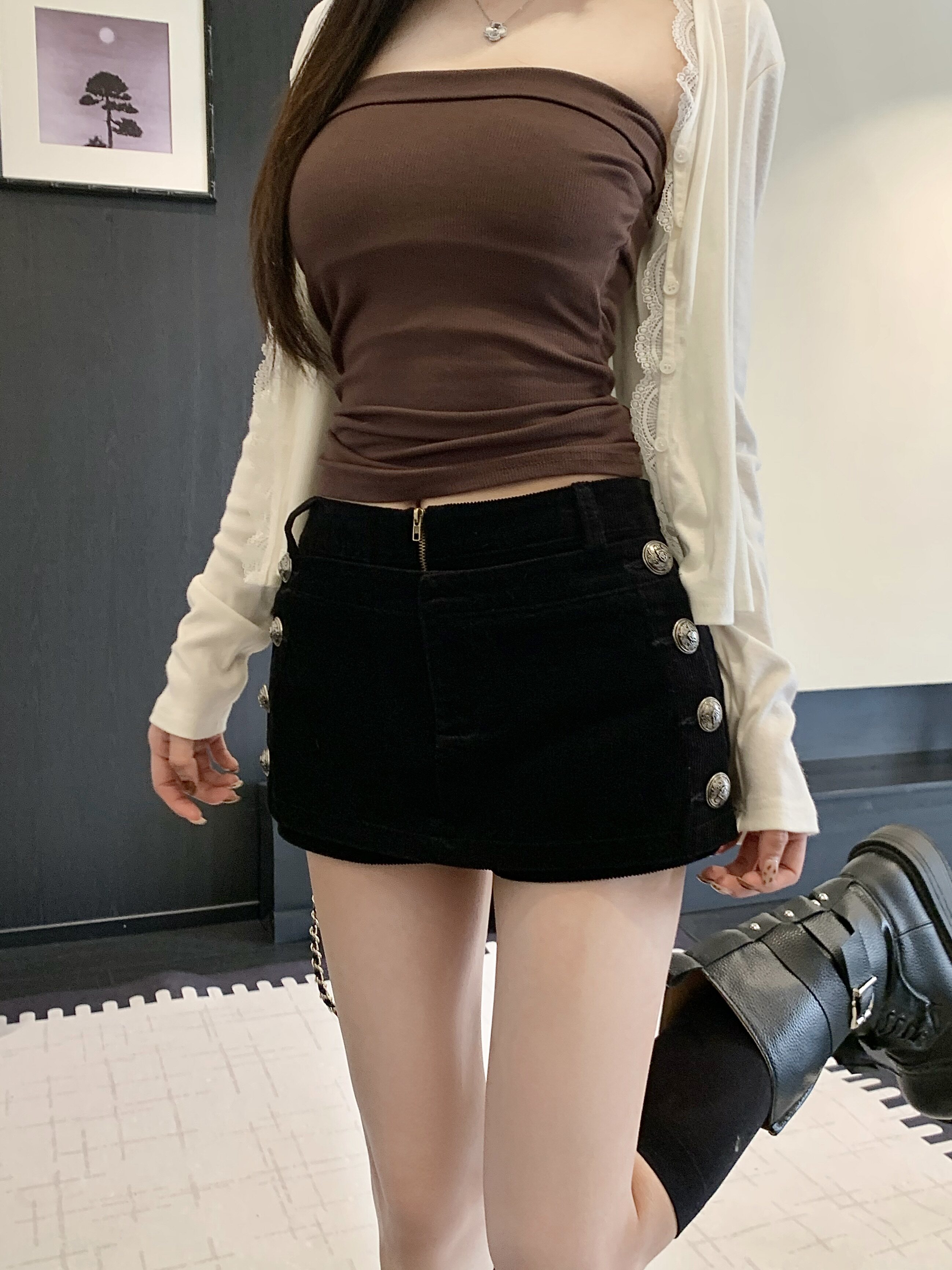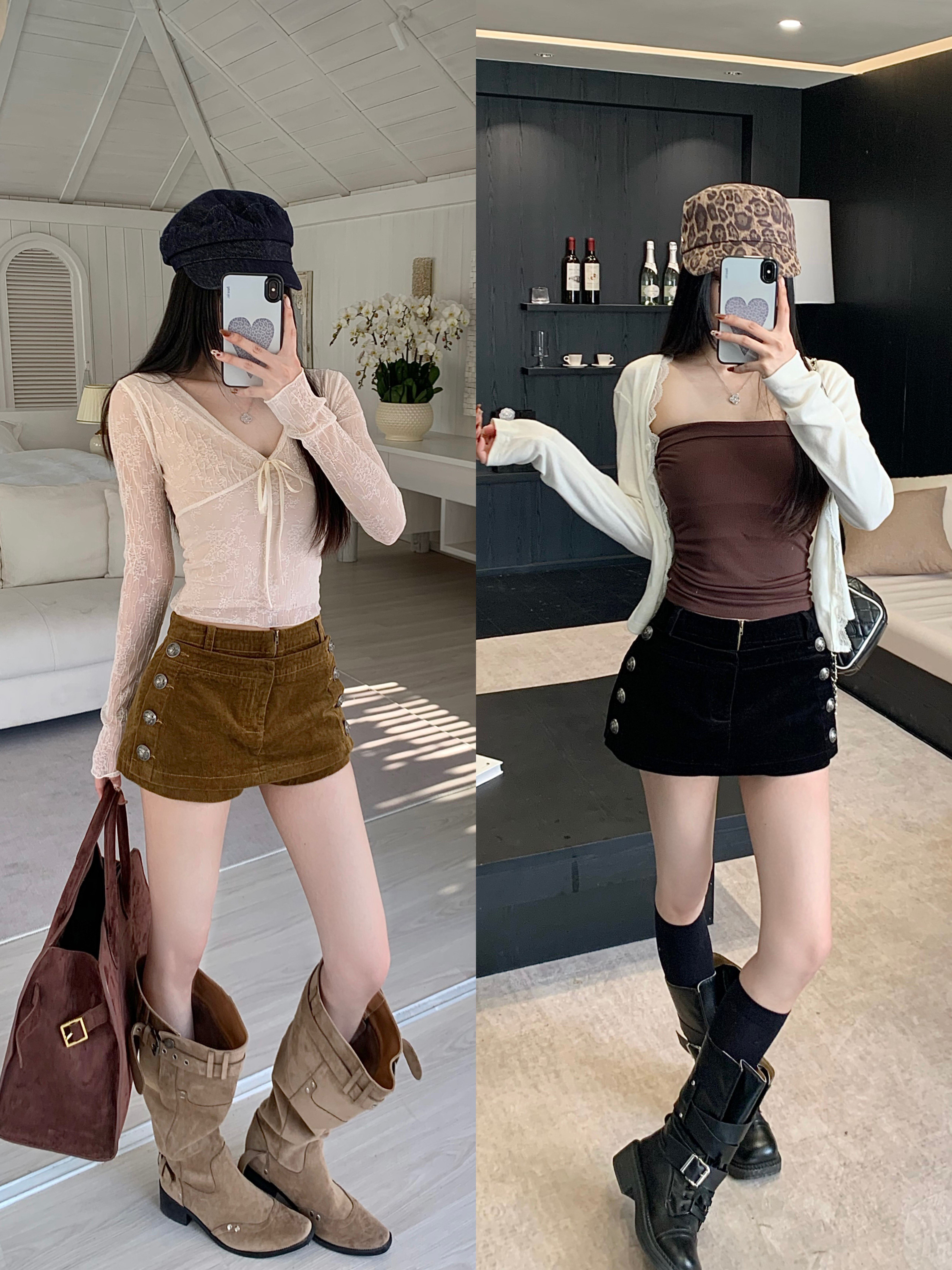 Khaki corduroy hip-hugging skirt, A-line skirt