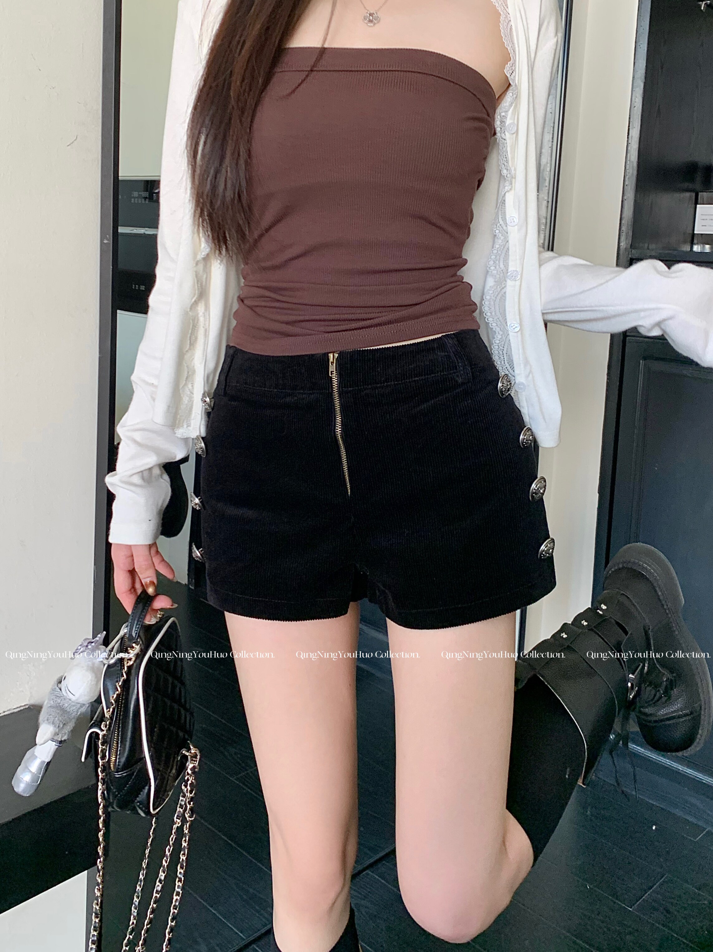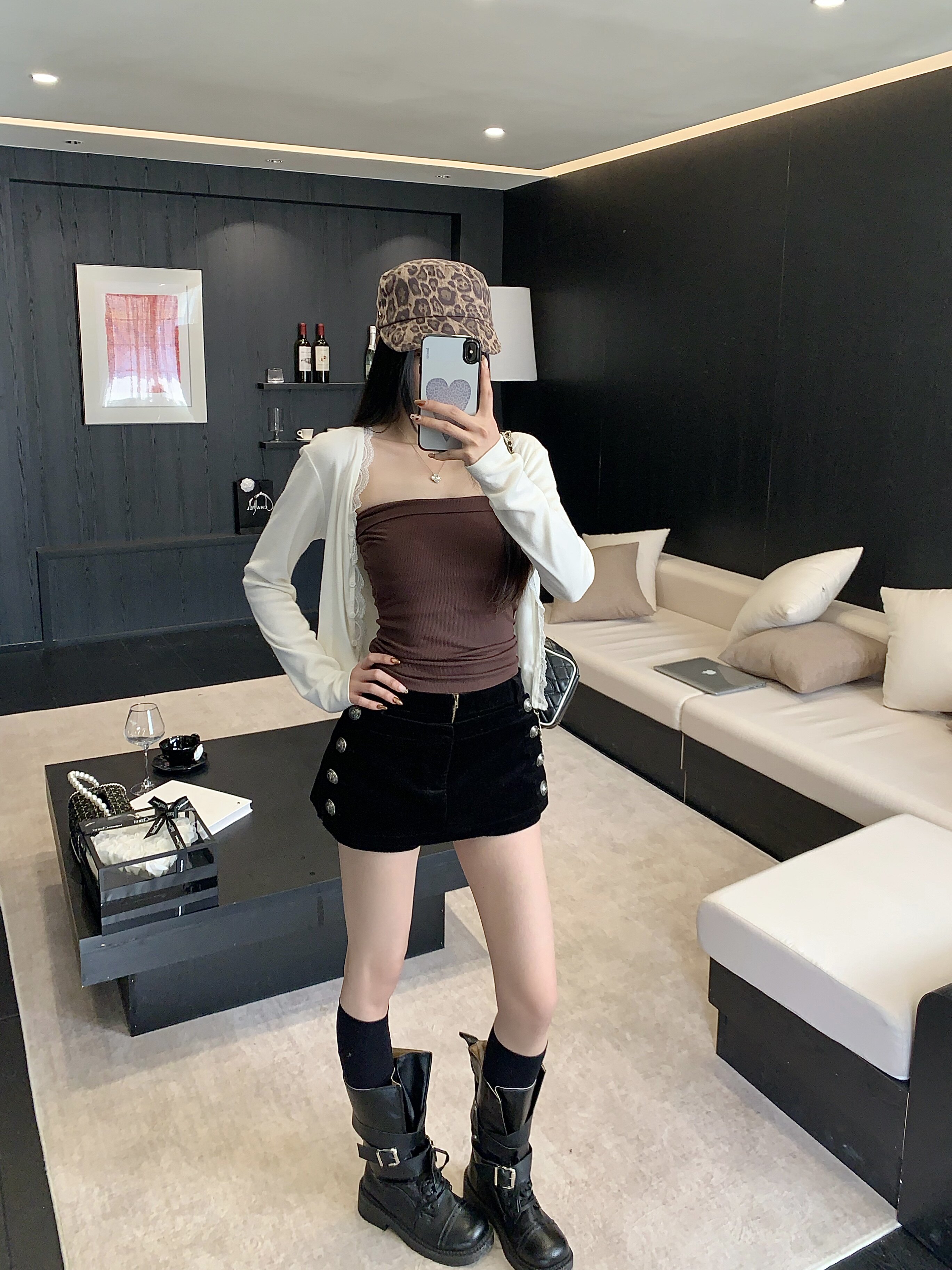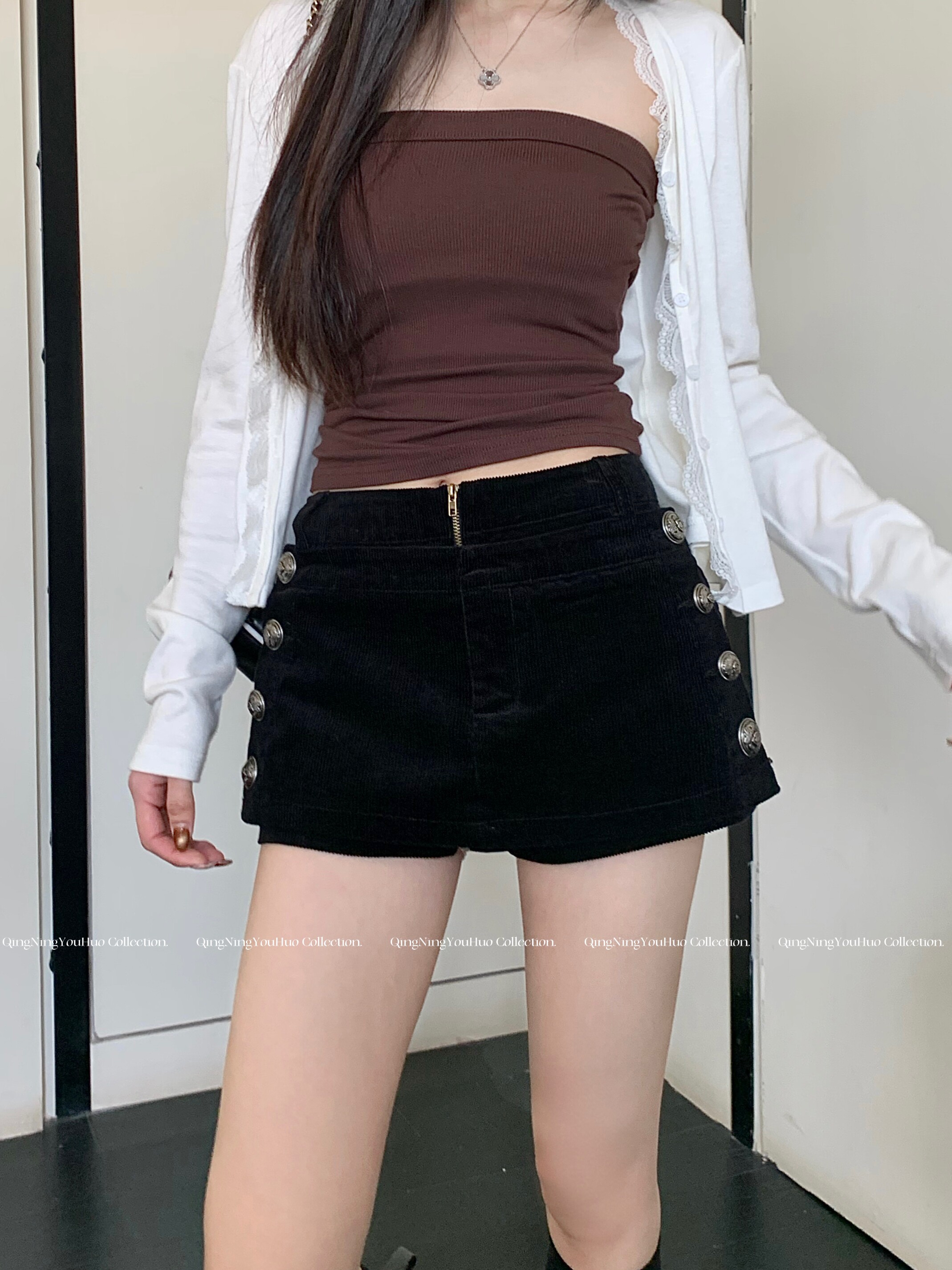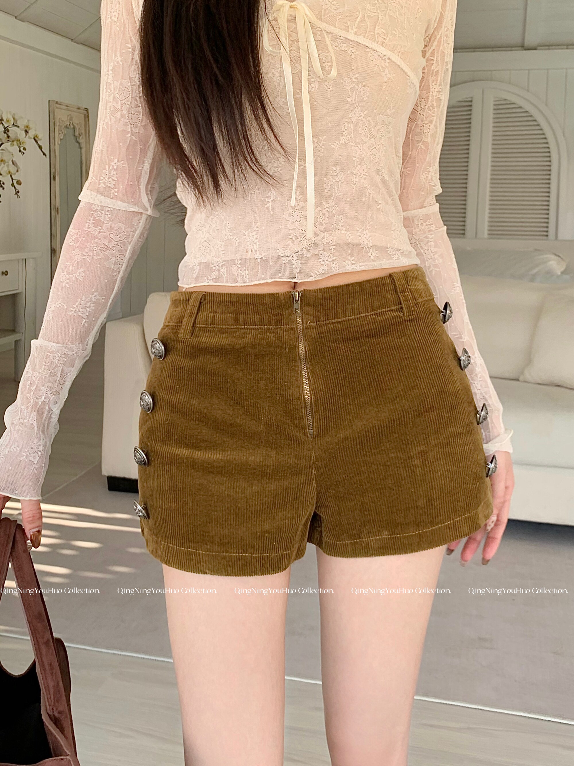 Khaki corduroy hip-hugging skirt, A-line skirt