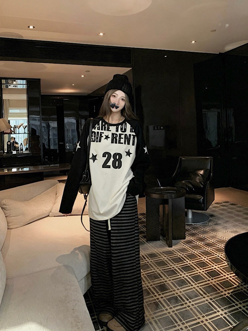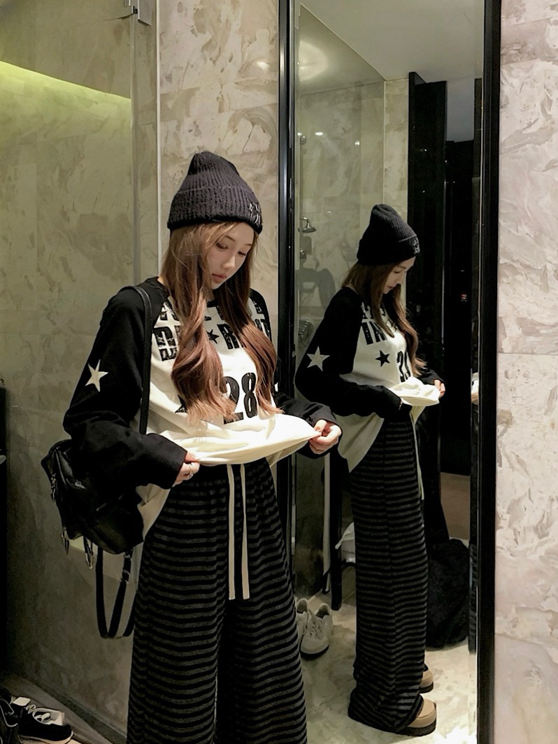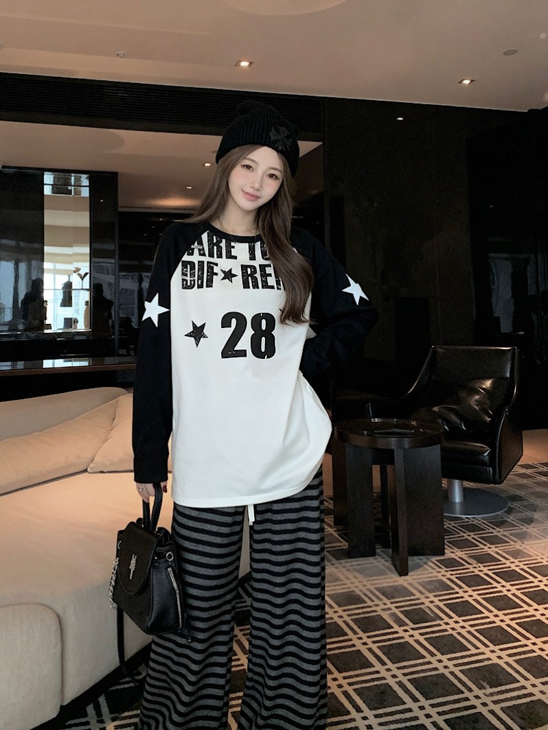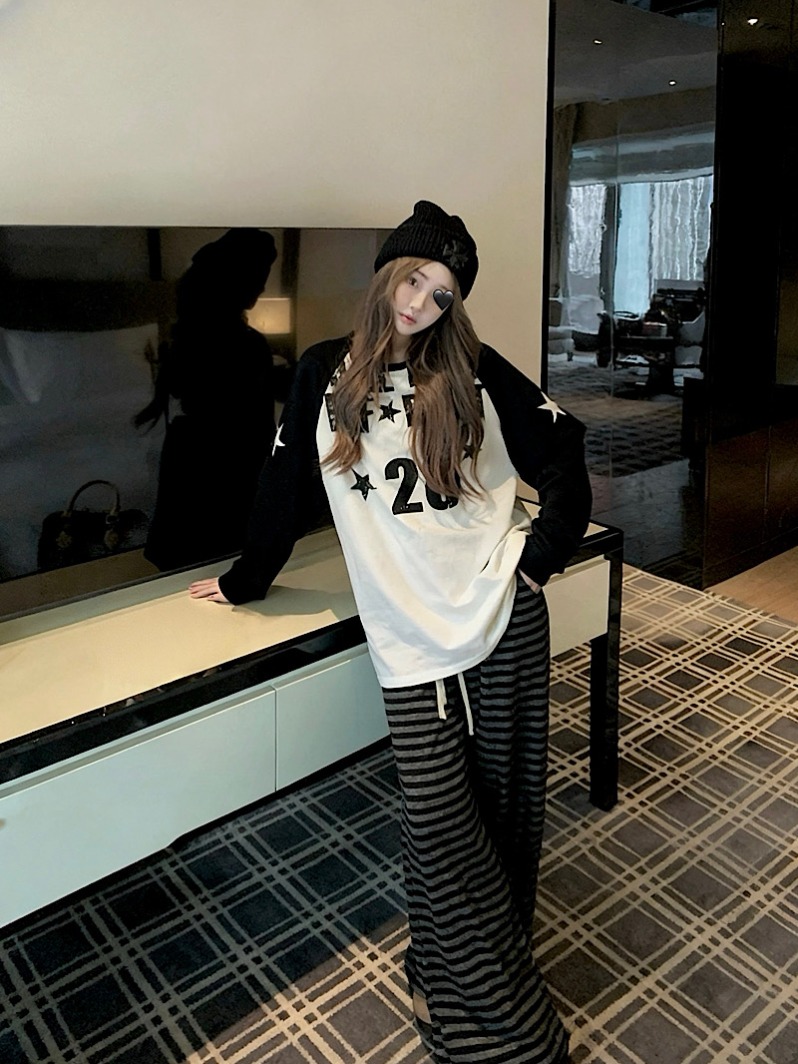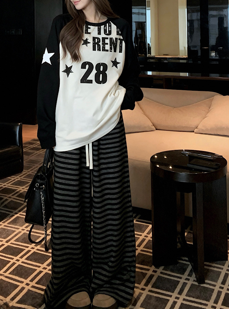 ROCKMORE [Classic Korean] design striped raglan short-sleeved crew neck T-shirt No reviews