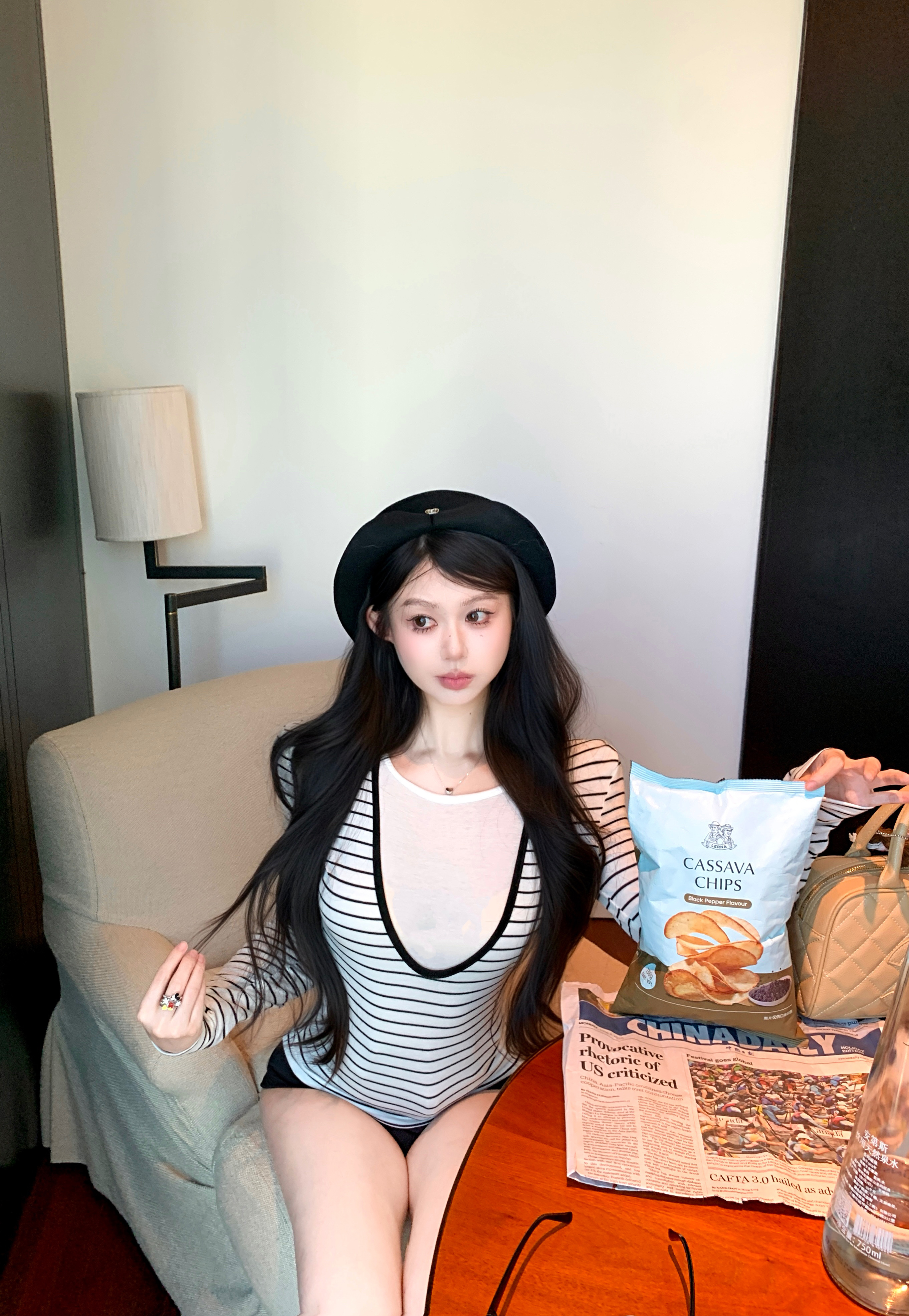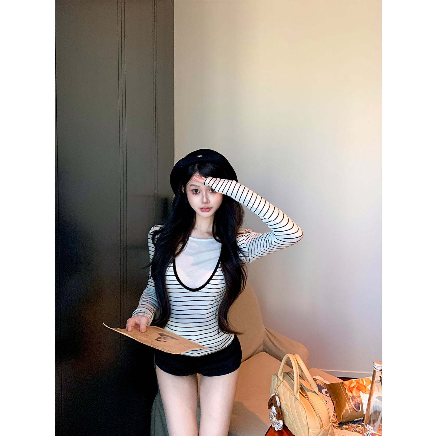 ROCKMORE [Classic Korean] design striped raglan short-sleeved crew neck T-shirt No reviews