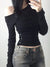FabGirls Pure Desire Sexy Breasted Patchwork Waist Slanted Shoulder Long Sleeve T-Shirt