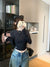 Knitted crew neck straight shoulder long sleeve T-shirt