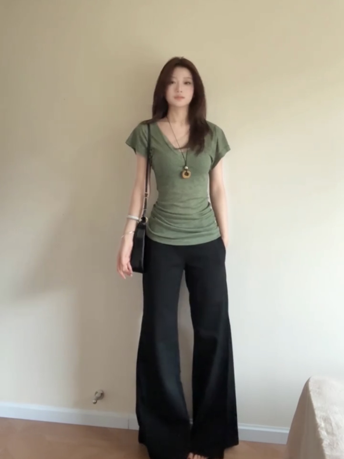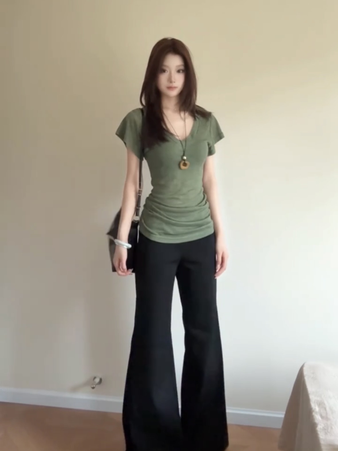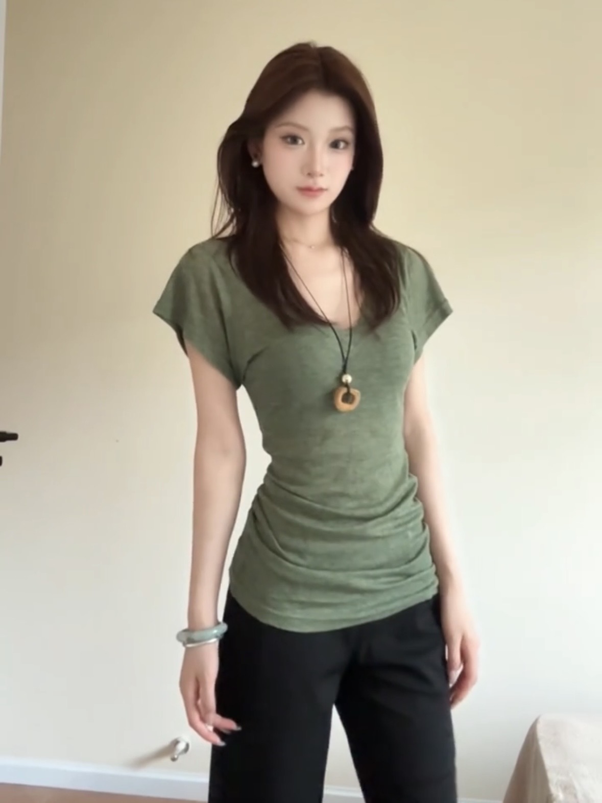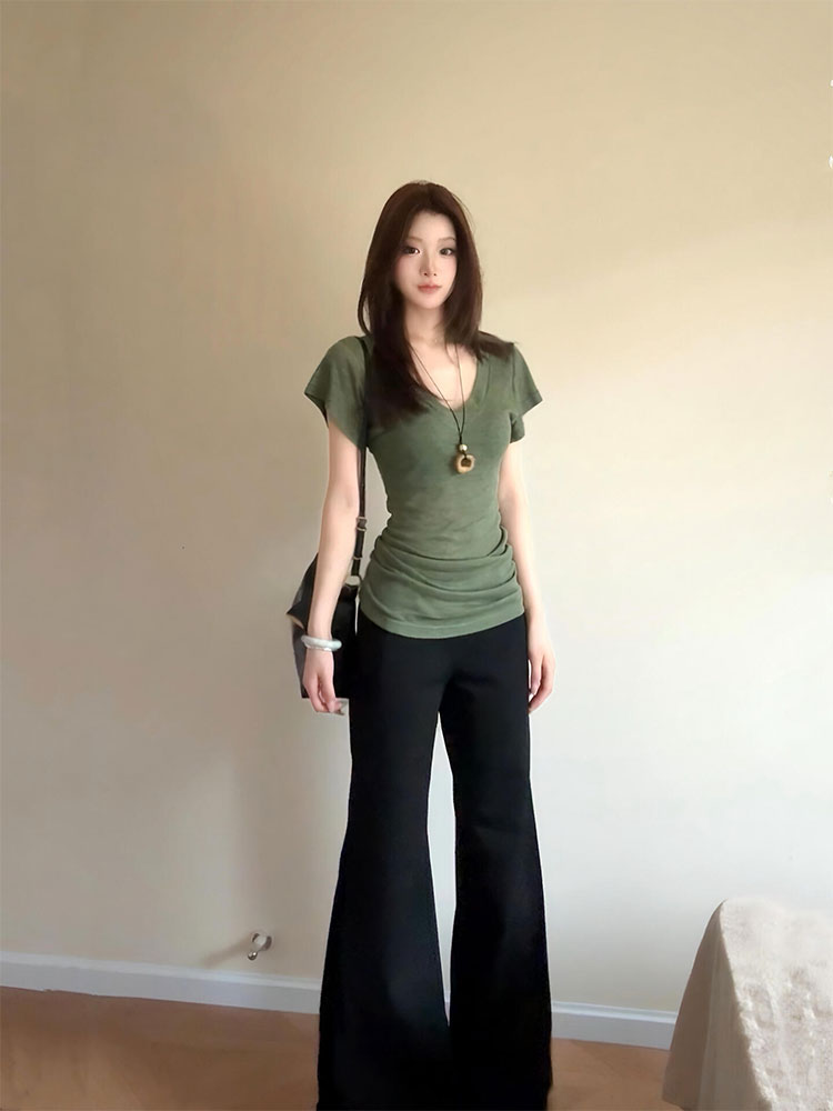 Korean bat sleeve V-neck short-sleeved T-shirt