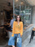 Korean Women's Clothing - Lazy Style Cover-Up Orange Striped Long Sleeve Sunscreen T-shirt