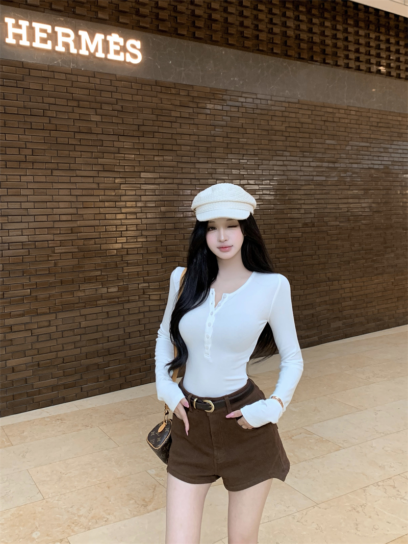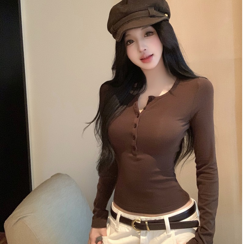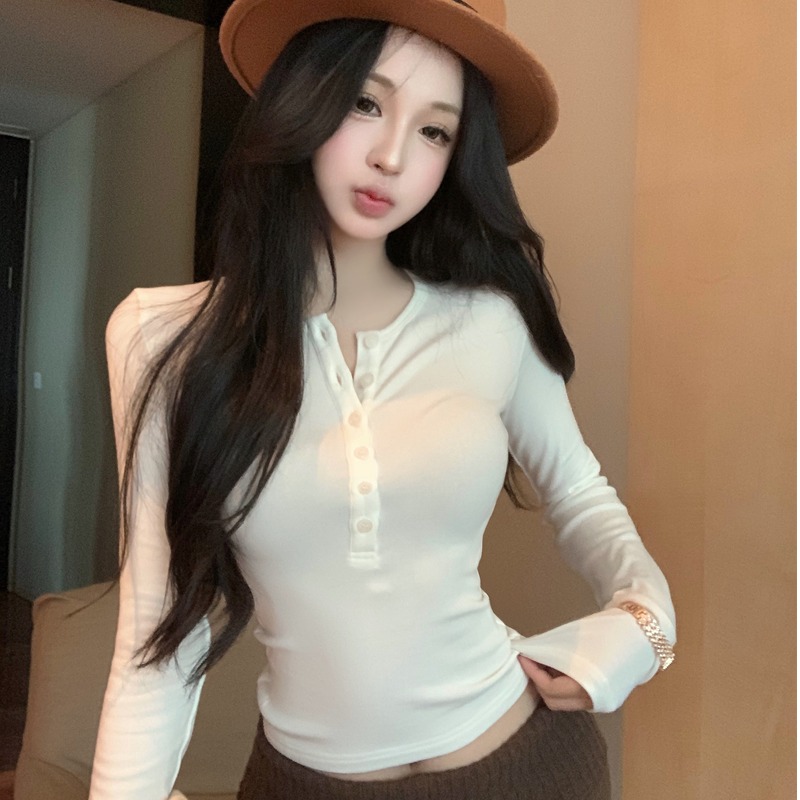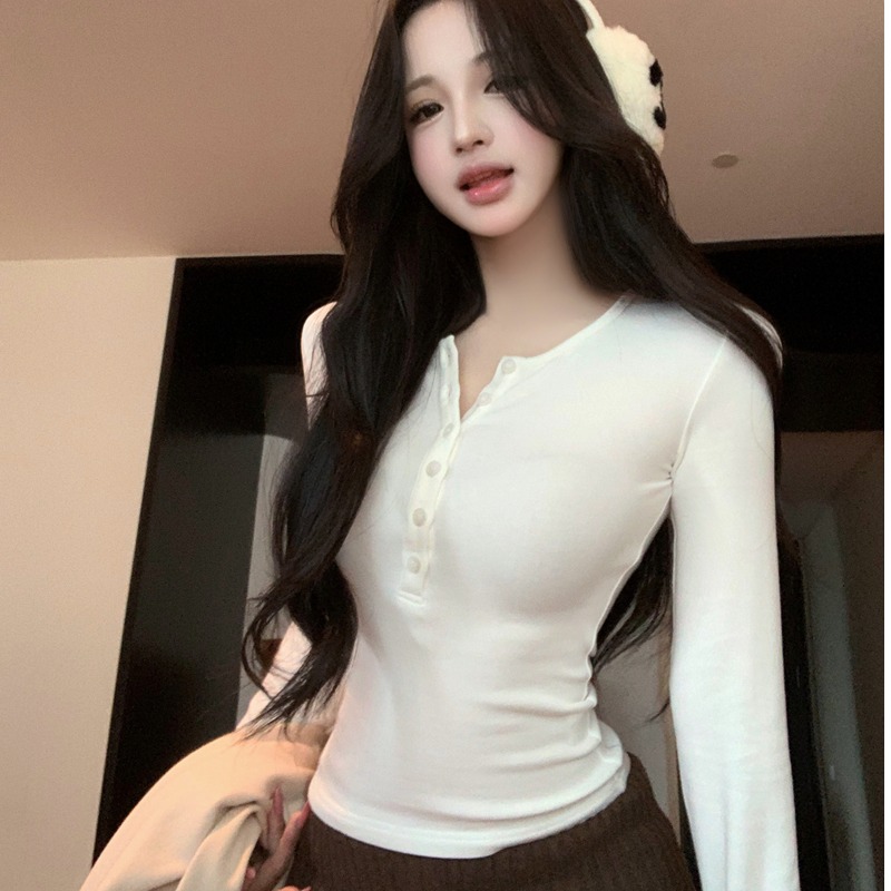 Niche temperament, half-open collar, button-down long-sleeved T-shirt