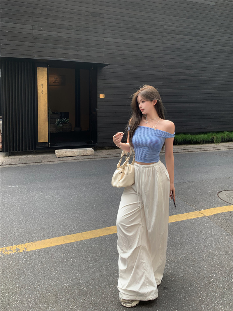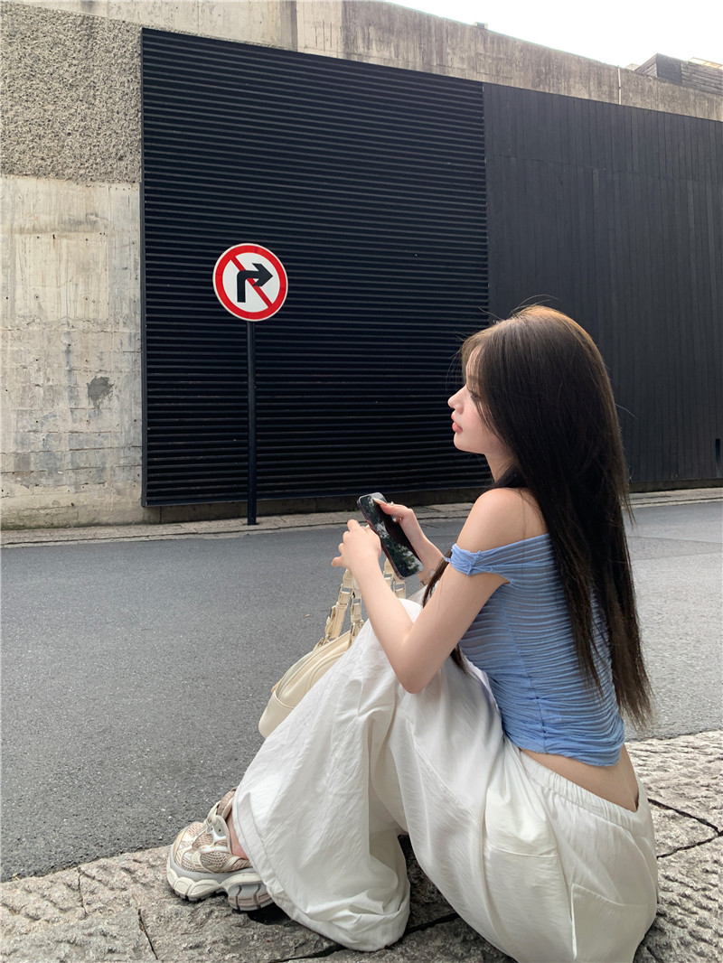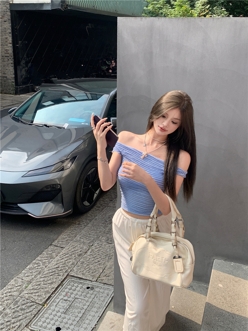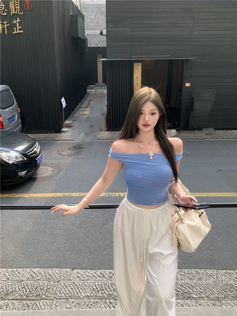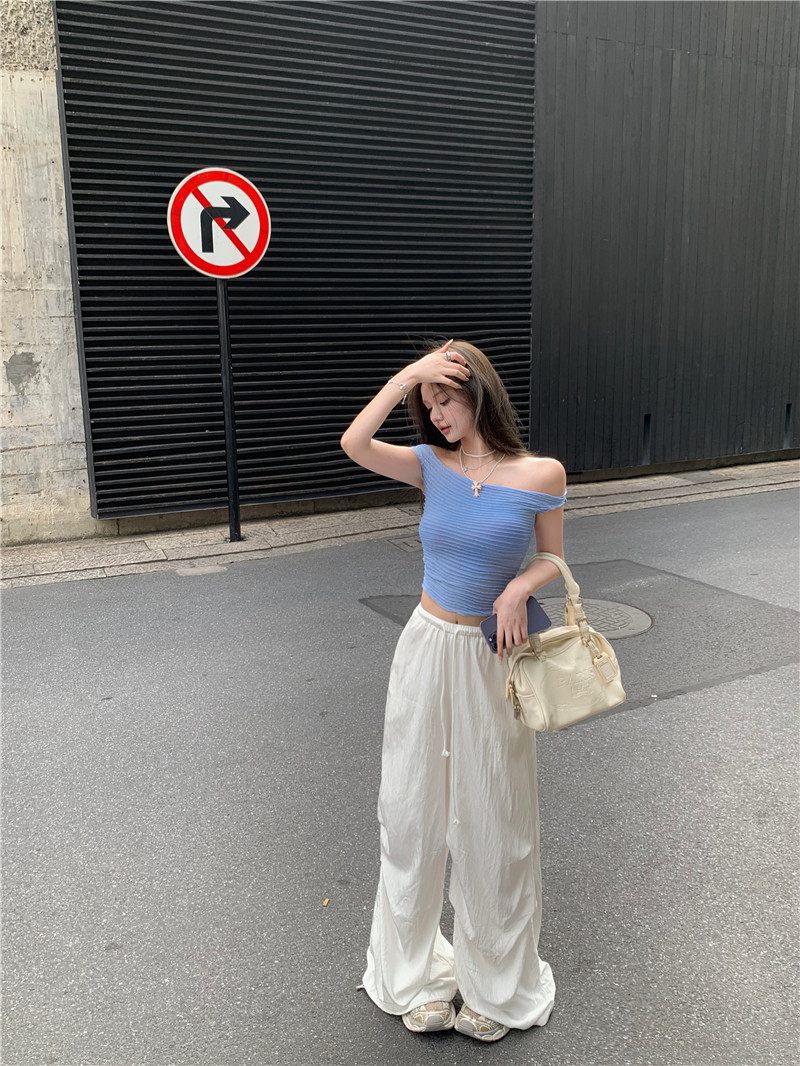 One-shoulder hot girl sexy short-sleeved off-the-shoulder T-shirt