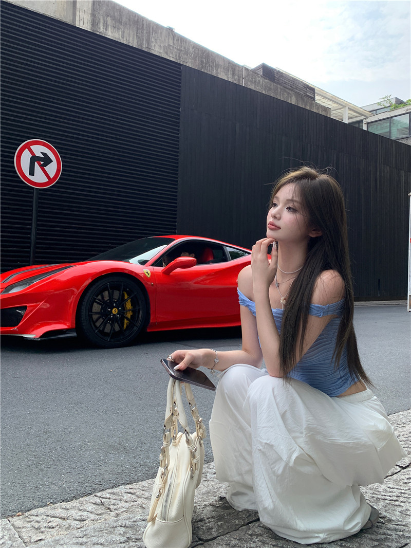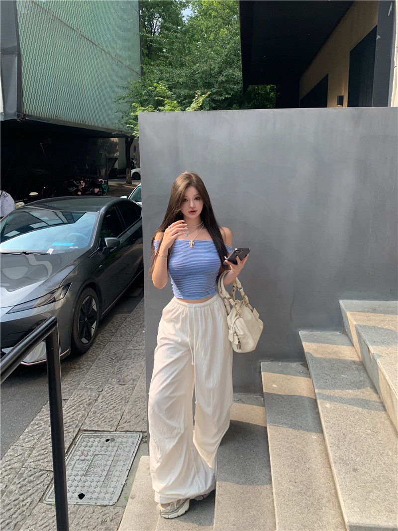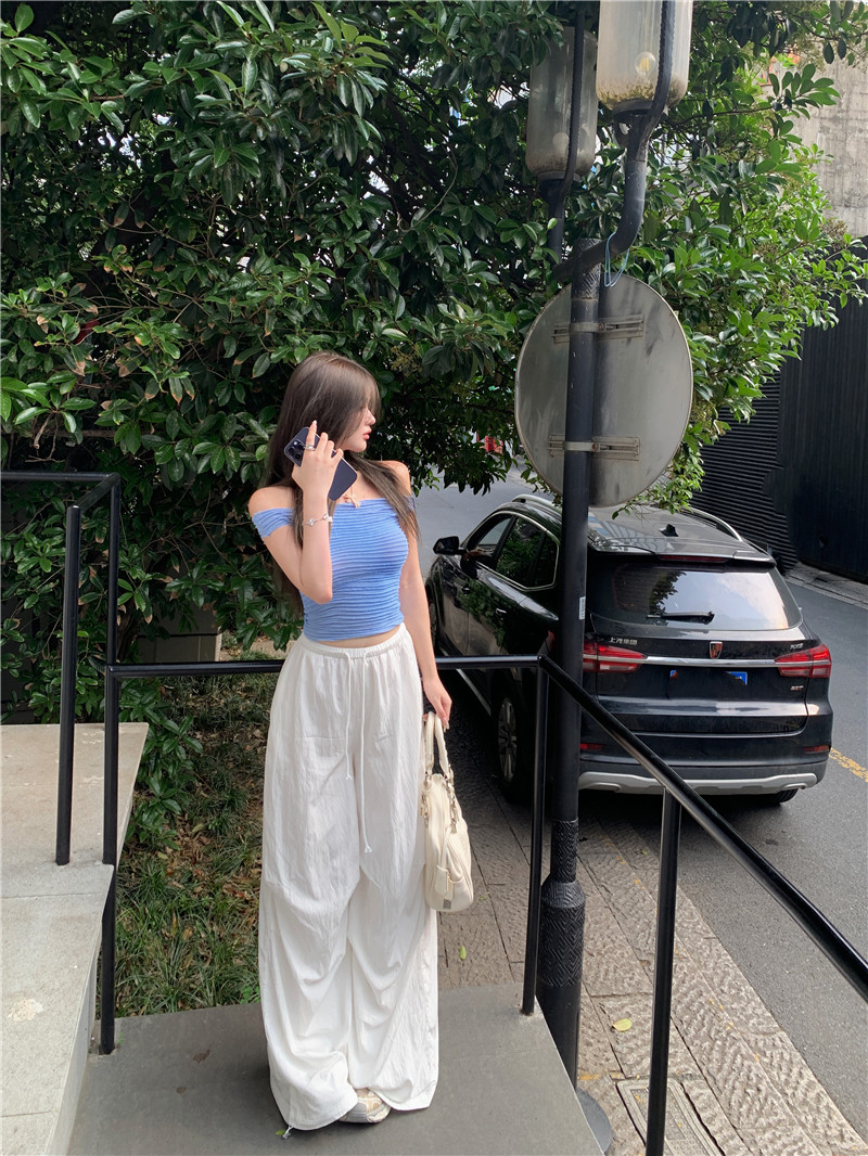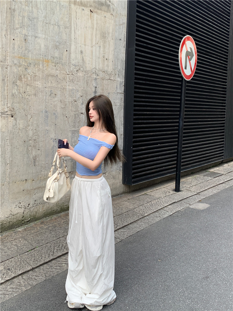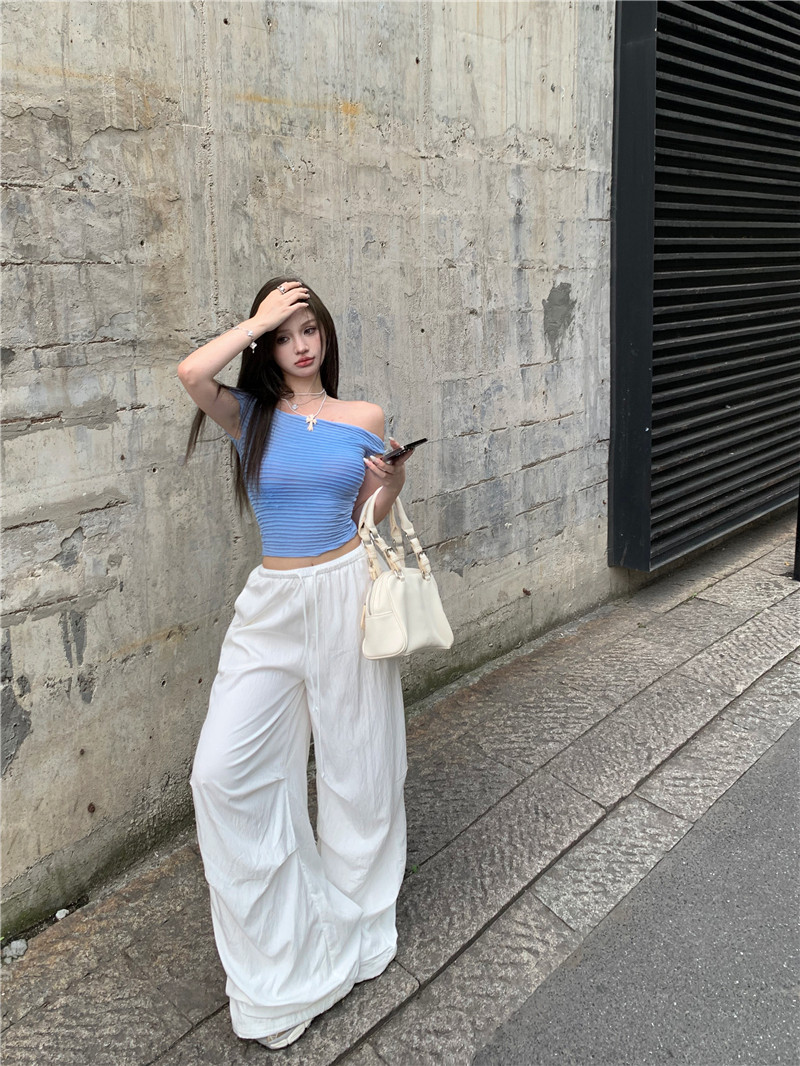 One-shoulder hot girl sexy short-sleeved off-the-shoulder T-shirt