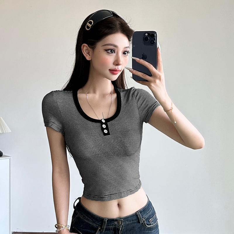 ROCKMORE [Classic Korean] design striped raglan short-sleeved crew neck T-shirt