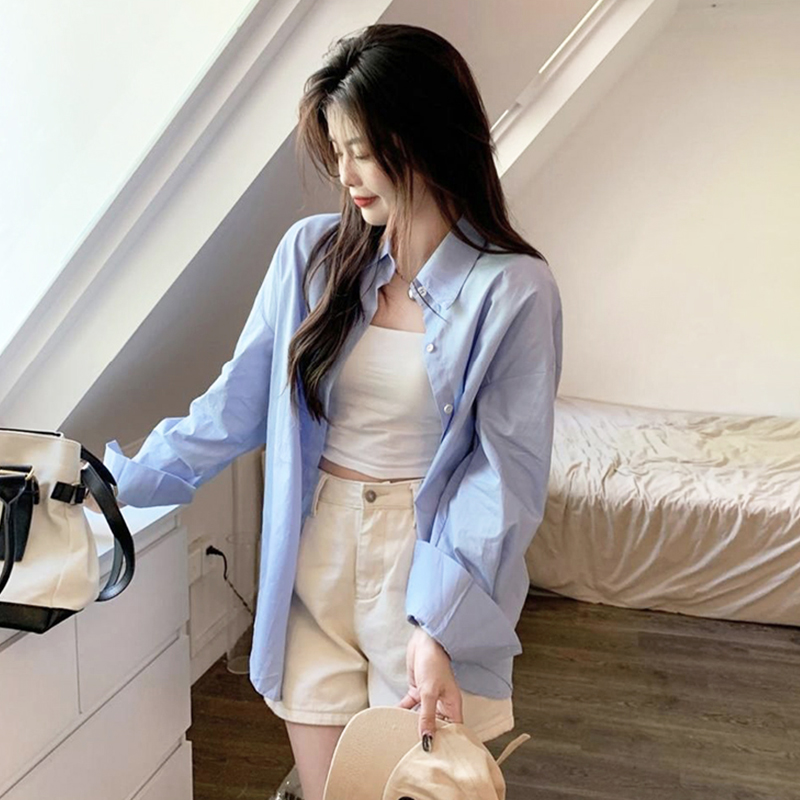 Solid color long-sleeved sunscreen shirt