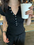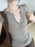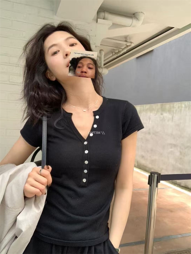 Solid colorV-neckshort sleeve ice silk knit T-shirt