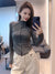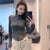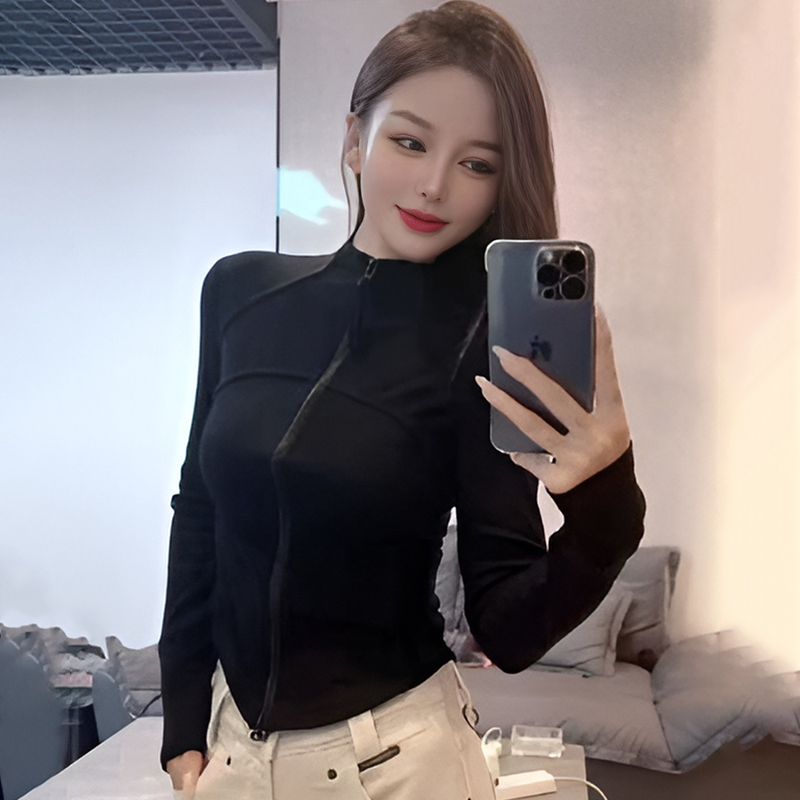 Gray stand-up collar zipper fishbone patchwork waist jacket