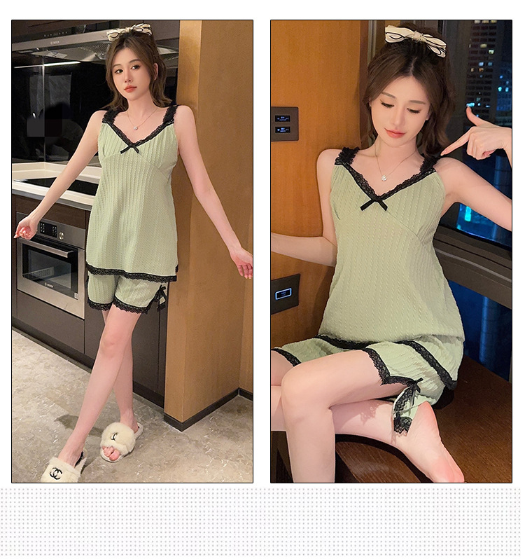 2-piece pajamas with lace, bow and breast pads