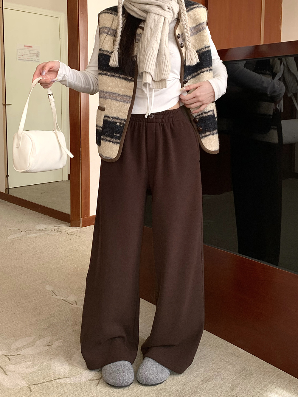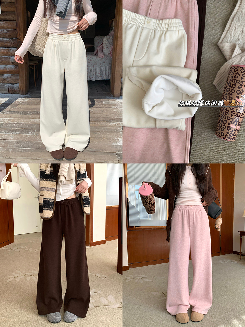 High-waisted Warm wide-leg sweatpants fleece thickened glutinous rice fleece slacks
