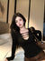 Plus-size women's sexy cut-out V-neck long-sleeved tops